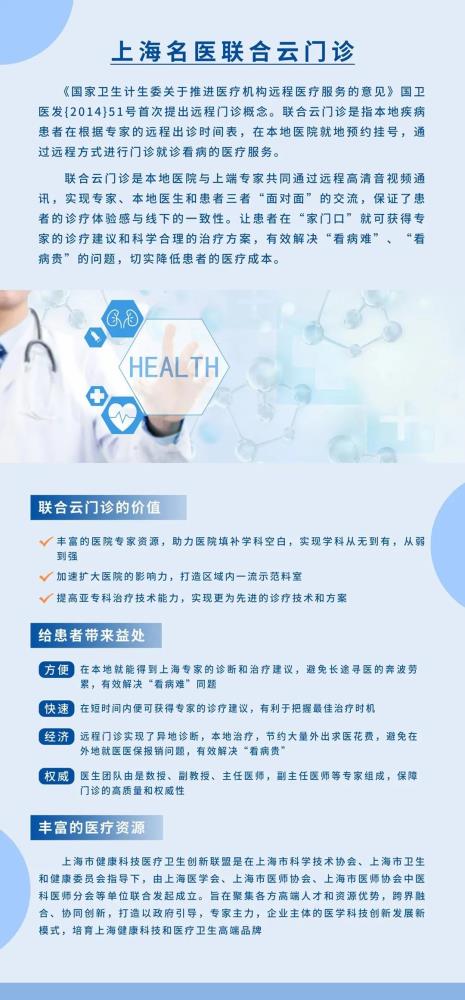 為解決患者疫情期間看病的不便減少不必要的交叉感染和平國際醫(yī)院推出上海名醫(yī)聯(lián)合云門診...