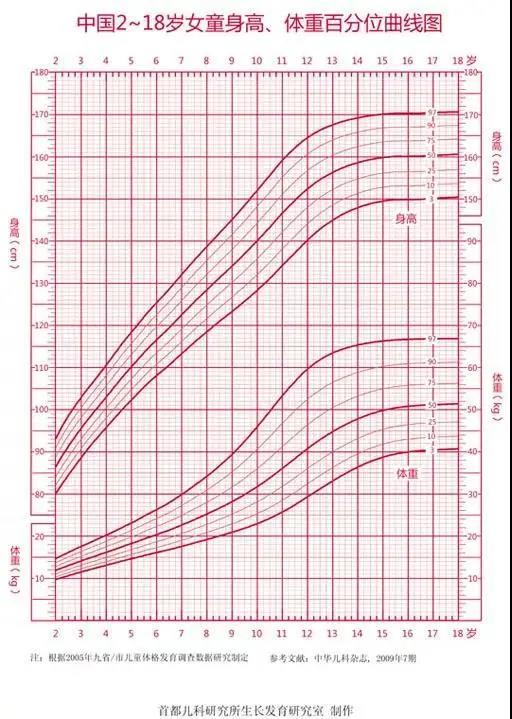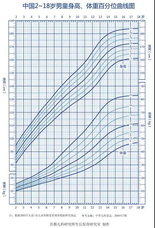 生長(zhǎng)曲線就是一張網(wǎng)和七條曲線。網(wǎng)的橫軸是孩子的年齡,縱軸是代表孩子的體重或身高(分為體重、身高兩張表)。