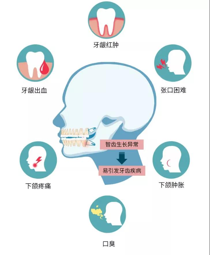 出現(xiàn)蛀牙、造成鄰牙病變、引起劇烈疼痛、智齒過長無咬合、引起其他口腔疾病的情況下,建議拔掉智齒。
