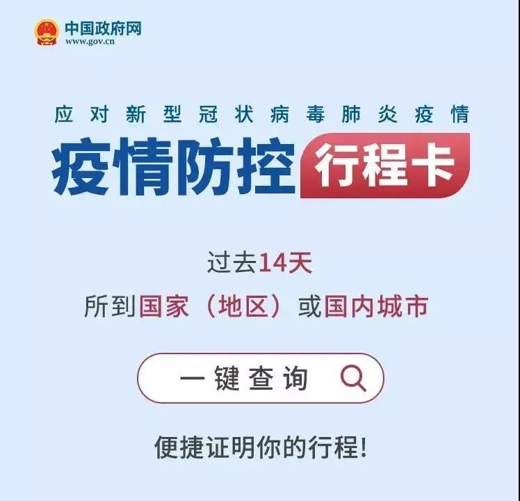 “行程卡”是國務(wù)院客戶端小程序上的一個功能,可以查詢個人國內(nèi)和國際過去14天內(nèi)的行程,國內(nèi)精確到停留4小時以上的省市,國外精確到國家。提前注冊,一鍵證明!